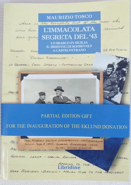 Una copia del libro “L’Immacolata Segreta del ‘43” scritto da Maurizio Tosco (con i capitoli tradotti in inglese, edizione Libridine) è stata consegnata a David Dwight Eisenhower, nipote di Dwight David “Ike” Eisenhower, comandante in capo delle forze alleate in Europa e 34° presidente degli Stati Uniti. David Dwight Eisenhower è professore e scrittore di storia contemporanea, marito di Julie Nixon figlia di Richard che fu 37° Presidente degli Usa. Il libro di Tosco racconta cosa avvenne l’8 dicembre 1943 all’aerodromo “Fontanelle” di Castelvetrano. Quel giorno il presidente degli Stati Uniti di allora Franklin Delano Roosevelt atterra a Castelvetrano. Secondo quanto racconta Tosco nel libro il Presidente compie, come si direbbe nel linguaggio spionistico, una “missione coperta”.