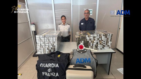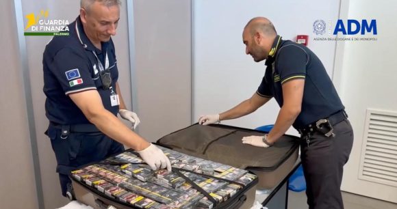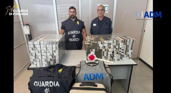 I finanzieri del Comando Provinciale di Palermo unitamente ai funzionari dell’Agenzia delle Dogane e dei Monopoli, che operano presso lo scalo aeroportuale “Falcone – Borsellino”, hanno arrestato, in flagranza di reato per traffico di tabacchi lavorati esteri, due cittadini stranieri provenienti da una località estera che hanno introdotto in Italia 64 kg di TLE destinati alla rivendita su circuiti di distribuzione illegali. Le fiamme gialle della Compagnia di Palermo-Punta Raisi e i funzionari ADM della Sezione Operativa Territoriale hanno individuato i due passeggeri nell’ambito degli ordinari controlli in area arrivi dello scalo aeroportuale allorquando venivano fornite dagli stessi dichiarazioni contraddittorie circa il motivo del viaggio e la destinazione finale.