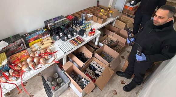 I carabinieri di Trapani hanno scoperto un vero e proprio laboratorio con 210 kg di materiale esplosivo altamente offensivo confezionato in 2108 ordigni con all’interno un totale di circa 110 kg di polvere esplosiva; 4 sacchi dal peso complessivo di 55 kg circa contenenti polveri varie verosimilmente alluminio, perclorato di potassio, polvere nera e zolfo; diverso materiale di confezionamento composto da tubi di plastica, tappi in plastica e cilindri di cartone; 650 piombini esplosivi di vario calibro; due pistole segnaletiche, una pistola da soft-air e una carabina ad aria compressa.
