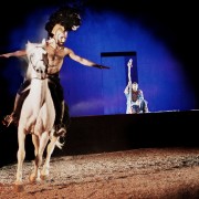 LO SPETTACOLO – Mondi diversi e apparentemente lontani possono talvolta incontrarsi, dando vita a realtà nuove e ricche di suggestioni. Ecco l’essenza dello spettacolo creato dal Cimarosa. In questo lavoro personale il regista mette insieme diverse forme espressive che si confrontano e si uniscono in un canto primigenio che riemerge alla memoria, dal profondo dell’animo umano. Un viaggio interiore, per riscoprire il senso di legami antichi e renderli nuovamente attuali. Si succedono, in maniera incalzante, i quadri: poesia, virtuosismo fisico, danza e musica si intrecciano e danno vita allo spettacolo, col sapore di qualcosa a metà tra il sogno e la fiaba. Uno nato dal canto della Terra, l’altro donato al mondo dal cielo: uomo e cavallo sono diversi, eppure si attraggono, rispondendo al richiamo dell’Altro. La dimensione terrena, selvaggia e primitiva dell’uomo si incontra e si scontra con quella eterea, ancestrale e spirituale del cavallo. Le essenze opposte si avvicinano, fino a unirsi in un rapporto simbiotico fatto di terra e fuoco, di sudore e di passione, di bene e male. Da qui nasce il centauro, fusione tra uomo e animale, tra bianco e nero, tra cielo e terra, l’ibrida creatura non riesce ad armonizzare le parti che lo compongono, cede alle loro seduzioni, le combatte, soccombe. Con un nuovo, estremo atto d’amore, però, la Terra che canta la vita ed è signora di nascita e morte, madre e magica sciamanna, illumina gli occhi delle sua creatura per metà uomo e per metà cavallo e ridona luce al suo spirito. In scena volteggi, numeri circensi, danze acrobatiche, riti simbolici mostrano l’invisibile e celano il visibile, raccontando il magico incontro tra mondi diversi: terra e aria, bianco e nero, bene e male, uomo e animale.