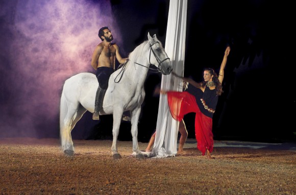 IL CAST E LA MACCHINA SCENICA – Ricco il cast di artisti in scena: tre cavalieri, dieci danzatori, due cantanti, un fuochista, due danzatrici aeree, due danzatori di Tai-tango. Complessa la macchina scenica con tre cavalli (due frisoni neri e un cavallo lipizzano) e una gru di trenta metri che consentirà i numeri di tessuto aereo. In scena: lo stesso Giuseppe Cimarosa, Lollo Franco, Alice Albertelli (soprano), Eleonora Giudizi (voce), Sara Rossi, Marika Riggio, Germano Colì, Paolo De Marianis, Floriana Filardo, Alessio Pacini, Irene Giglio, Lorena Ciulla, Cristian Radicchi, Maura Perilli, Giuseppe Schifano, Caterina D’Antoni, Marco Failla, Emy Di Maio, Roberta Ciulla, Salvatore Tortorici, Valentina Gebbia e Vita Ceraulo.