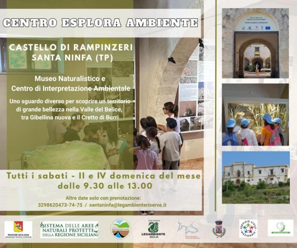 Ritorna la possibilità di visitare nei fine settimana il centro “Esplorambiente” al Castello di Rampinzeri a Santa Ninfa, gestito dalla Riserva Naturale Grotta di Santa Ninfa: si tratta di un museo geologico e naturalistico interattivo e coinvolgente che racconta la storia del territorio protetto e del suo comprensorio attraverso esposizioni tematiche, ricostruzioni di ambienti, plastici, video, exibit didattici. La mostra permanente sulla geologia e sulla biodiversità della Riserva accoglie rocce gessose tipiche dell’area (dall’origine geologica all’utilizzazione millenaria da parte dell’uomo), pannelli sulla storia e sull’importanza del castello, uno degli spazi è dedicato alla figura di Teodosio De Stefani-Perez, un grande scienziato naturalista che visse al Castello tra la fine dell’800 e gli inizi del ‘900. Il centro rimane aperto tutti i sabati, dalle 9,30 alle 13, la seconda e quarta domenica del mese, 9,30-13.