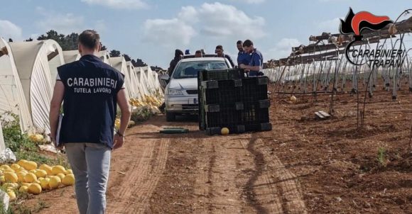 Nel corrente mese di agosto il Carabinieri del Comando Provinciale di Trapani e del Nucleo Ispettorato del Lavoro di Trapani, hanno dato corso ad una intensa campagna di controlli ad aziende agricole del territorio finalizzati al contrasto del “caporalato” e del “lavoro nero”. I servizi, attuati nell’ambito del più ampio piano nazionale disposto dal Comando Generale dell’Arma dei Carabinieri, hanno interessato 18 aziende agricole della provincia (dedite alla coltivazione di meloni e angurie in campi aperti, nonché degli altri ortaggi di stagione in serra), presso le quali veniva verificata la posizione di complessivi 28 lavoratori di cui 7 risultati “in nero”, tutti di nazionalità straniera.