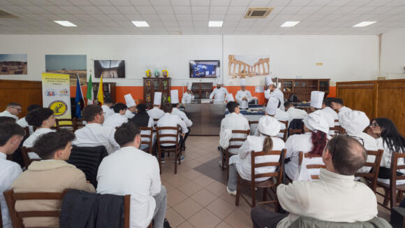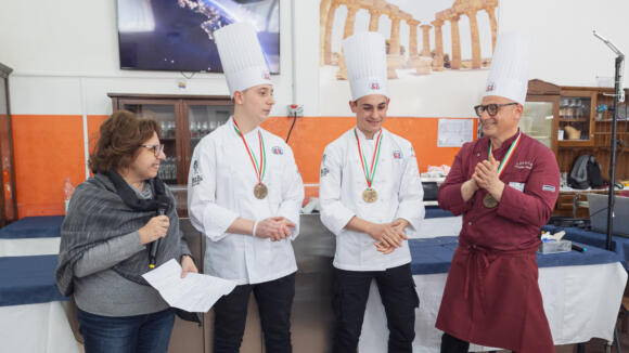 Un plauso da parte di tutta la platea agli alunni Alessandro Ranauro, Giuseppe Ottoveggio, Damiano Benenati, Michele Giambalvo, Alecsandro Apetroae e Giuseppe Ferranti magistralmente guidati dai professori Giuseppe Caruso, Salvatore La Bella e Paolo Austero che hanno portato in alto il buon nome dell’Istituto nel Contest riminese. La cooking lesson è solo una delle tante iniziative di ampliamento dell’offerta formativa poste in essere dal nostro Istituto che ha come obiettivo la formazione di eccellenze nel settore enogastronomico e turistico, ha sottolineato la Dirigente Conciauro, senza perdere di vista l’inclusione scolastica e sociale di tutti gli alunni.