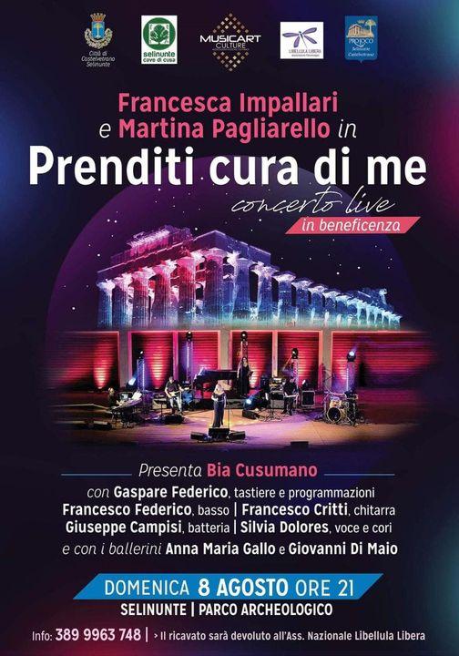 Domenica 8 agosto, doppio appuntamento con l’Estate Castelvetrano Selinunte 2021. Dalle ore 17.00 fino all’imbrunire, presso gli spazi di “Pensiero Contemporaneo”, avrà luogo l’ottava edizione di “Articolazione”, estemporanea e mostra di pittura e arte, fortemente voluta dalla Pro Loco guidata da Vincenzo Filardo che la definisce “un’occasione unica per conoscere ed apprezzare gli artisti del nostro territorio.” Alle ore 21, infine, presso la collina orientale del Parco Archeologico di Selinunte, avrà luogo il concerto di beneficenza “Prenditi cura di Me”, il cui ricavato sarà devoluto all’associazione Nazionale Libellula Libera per la finalità e progetti sulla sindrome fibromialgica. L’evento è curatodall’Associazione “Musicar Culture” con Francesca Impallari e Martina Pagliarello. A presentare la serata sarà Bia Cusumano, referente dell’associazione Libellula Libera. Alla tastiera e alla programmazioni Gaspare Federico, al basso Francesco Federico, alla batteria Giuseppe Campisi, alla chitarra Francesco Critti, che si esibiranno insieme alla voce di Silvia Dolores, con i ballerini Anna Maria Gallo e Giovanni Di Maio.