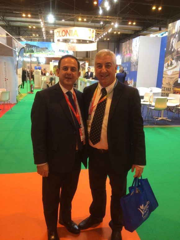 Il Ministro del turismo del Libano, Avenis Guidanian, nella foto con il Direttore Antonio Barone, ha avviato un progetto integrato con i colleghi della Grecia e di Cipro nell’ambito della iniziativa della Organizzazione Mondiale del Turismo dedicata alla RdF che si integrerà con la Via della Seta. I due itinerari infatti sono gli unici di cui si interessa al momento l’Organizzazione Internazionale del Turismo. Ma interessa anche un accordo con l’Italia, la Spagna e la Francia.
