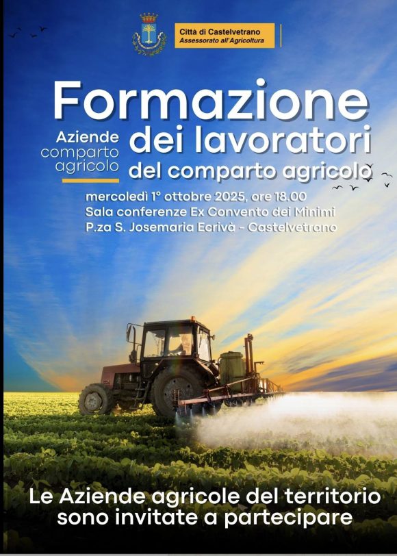Un incontro per le aziende del comparto agricolo, durante il quale si parlerà di formazione e delle esigenze delle imprese. A promuoverlo per domani – mercoledì 1° ottobre, ore 18 all’ex convento dei Minimi a Castelvetrano – è stata l’Amministrazione comunale. A presiederlo sarà l’assessore Salvatore Ingrasciotta. La Sicilia in questi anni sta affrontando una grave emergenza idrica, la quale ha messo a dura prova il settore agricolo e ha portato gli agricoltori siciliani ad affrontare difficoltà causate principalmente dalla siccità che ha ridotto la produzione e ha danneggiato le colture. L’incontro è aperto a tutti.