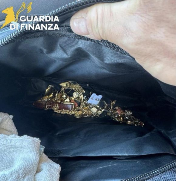 Durante l’attività di pedinamento, il soggetto aveva momentaneamente fatto perdere le proprie tracce, per poi riapparire dopo circa mezz’ora con una borsa al seguito, fattore che aveva generato grande sospetto nei finanzieri, che hanno pertanto deciso di fermarlo immediatamente per un controllo: all’interno della borsa, infatti, sono stati rinvenuti gioielli, orologi, monili e altri oggetti d’oro per un valore complessivo di circa 40 mila euro, appena sottratti a una coppia di anziani italiani.