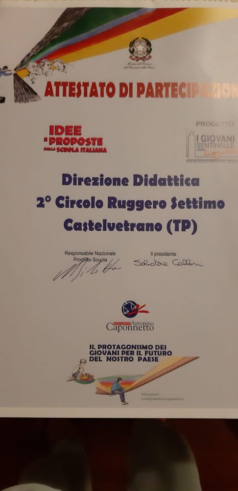 Lunedi 21 ottobre 2019, presso il Teatro Politeama, una rappresentanza di alunni delle classi quinte del II Circolo R. Settimo ha partecipato alla Conferenza Finale Regionale del Progetto “ Sentinelle della Legalità”, indetto dalla Fondazione A.Caponnetto, in collaborazione con il MIUR, che nell’a.s. 2018-2019 ha visto il coinvolgimento di numerosi Istituti scolastici di ogni ordine e grado .
