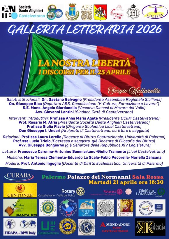 Martedì 21 aprile 2026, alle ore 16:30, nella prestigiosa Sala Rossa del Palazzo dei Normanni di Palermo, si terrà l’incontro dal titolo “La nostra libertà. I discorsi per il 25 aprile”, dedicato a una riflessione corale sui valori fondativi della Repubblica.