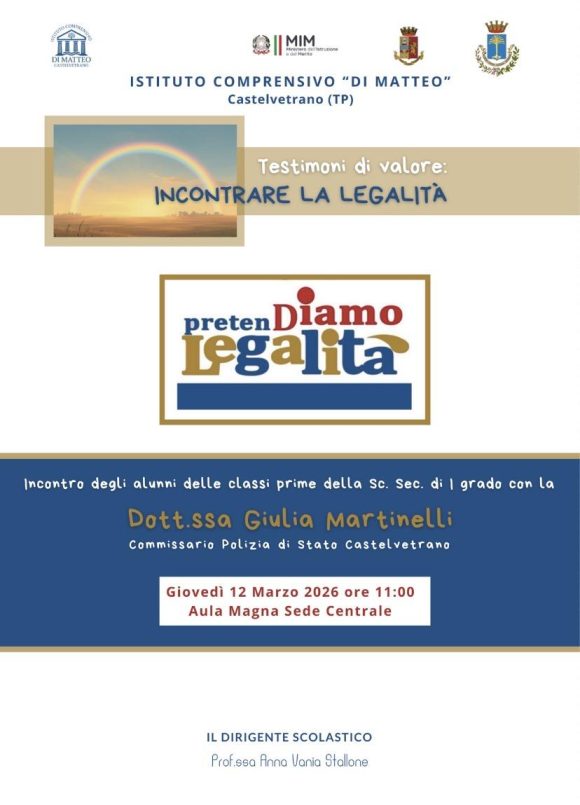 Nell’ambito del progetto-concorso “PretenDiamo legalità”, nell’istituto comprensivo “Giuseppe Di Matteo” di Castelvetrano, le classi prime della scuola secondaria di primo grado hanno partecipato a un incontro formativo con la dirigente del Commissariato di Pubblica sicurezza di Castelvetrano Giulia Martinelli. Il progetto è promosso dal Ministero dell’Interno, in collaborazione con quello dell’Istruzione e del merito, con l’obiettivo di diffondere tra i giovani i valori del rispetto delle regole, della partecipazione civile e dei principi della Costituzione. Nel corso del dibattito, un ampio spazio è stato dedicato alla sicurezza in rete. Il Commissario Martinelli ha approfondito la tematica del cyberbullismo, analizzando i rischi legati all’uso dei social network e delle piattaforme di messaggistica. Attraverso esempi concreti e un linguaggio diretto, la dirigente ha spiegato ai ragazzi le conseguenze legali e psicologiche di comportamenti prevaricatori online, sottolineando come il “mondo virtuale” non sia una zona franca, ma uno spazio in cui ogni azione ha un peso reale.