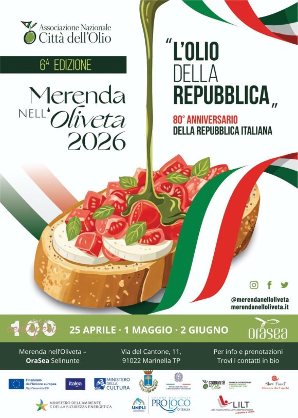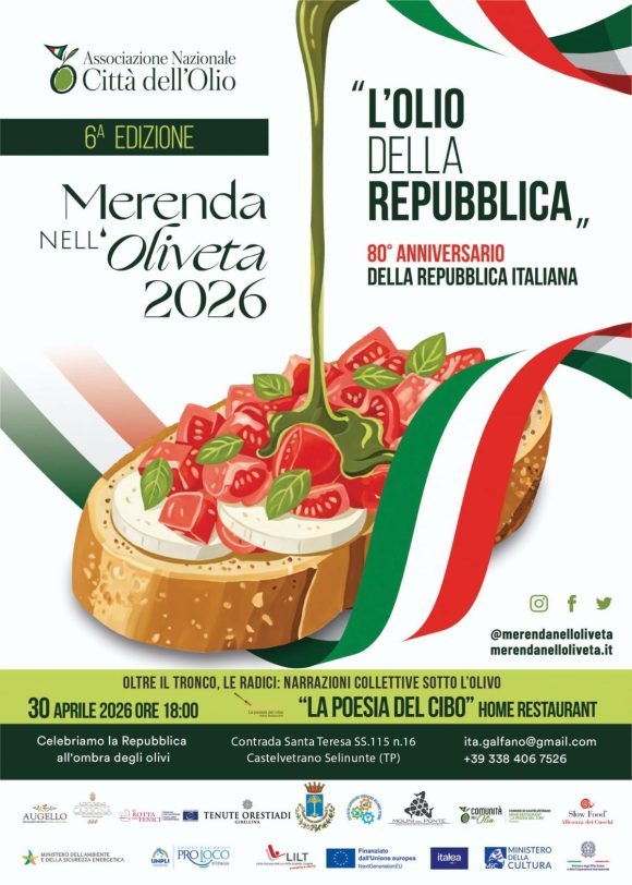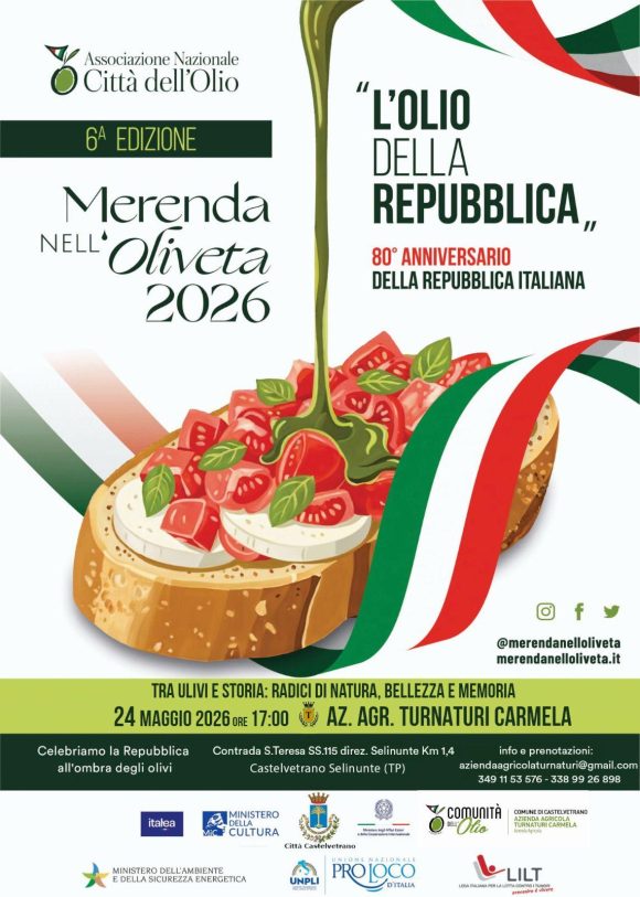 Torna nel territorio di Castelvetrano uno degli appuntamenti più significativi promossi dalle Città dell’Olio: “La Merenda nell’Oliveta”, giunta alla VI edizione e dedicata agli 80 anni della Repubblica Italiana. Un’iniziativa che invita a rallentare, a riconnettersi con la terra e a riscoprire il valore autentico del paesaggio olivicolo, simbolo vivo della nostra identità. L’olivo diventa così metafora della Repubblica: radici profonde nei valori condivisi, un tronco che unisce territori e generazioni, rami che si estendono nelle comunità e nelle storie quotidiane.