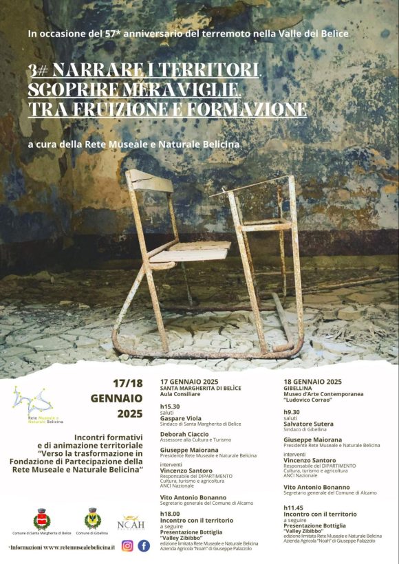 In occasione del 57º anniversario del terremoto nella Valle del Belìce la Rete museale e naturale belicina ha organizzato una serie di iniziative, con l’obiettivo di accrescere il coinvolgimento e la sensibilizzazione verso il patrimonio e la memoria di un territorio che porta ancora i segni di quel 15 gennaio 1968. Martedì 14, mercoledì 15 e giovedì 16 gennaio, siti culturali, archeologici e naturali tra le province di Trapani, Agrigento e Palermo, apriranno gratuitamente musei, parchi archeologici e riserve naturali, in favore delle scuole di ogni ordine e grado, nell’ambito dell’iniziativa “Narrare territori. Scoprire meraviglie tra fruizione e formazione”. Inoltre, venerdì 17 e sabato 18 gennaio sono in programma, a Santa Margherita di Belice e Gibellina, due incontri nei quali verrà prospettata la prossima trasformazione della Rete museale e naturale belicina in Fondazione di partecipazione. “Vogliamo iniziare questo 2025 – dice Giuseppe Maiorana, presidente della Rete – con un nuovo punto di vista, che dovrà diventare normalità: educare i ragazzi al ricordo attraverso l’arte e il patrimonio custodito all’interno dei nostri luoghi museali e culturali”.