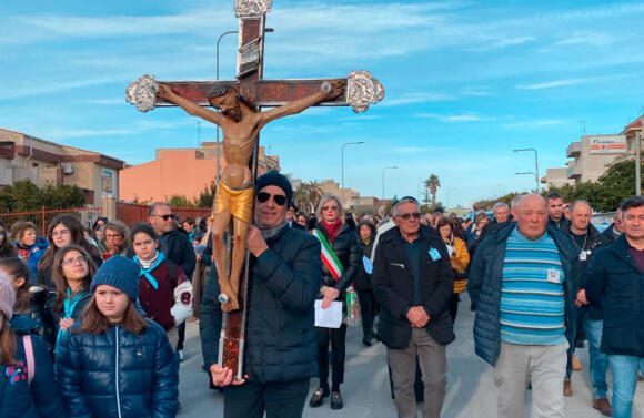 Oltre le proteste coi trattori arrivano anche le preghiere affinché si possa superare la crisi che sta colpendo il comparto agricolo. È successo a Gibellina dove la congregazione del Ss. Crocifisso ha organizzato una via crucis penitenziale coinvolgendo le congregazioni locali, i ragazzi scout, i giovani dell’ACR e alcuni agricoltori gibellinesi. Col crocifisso in apertura del corteo, la via crucis si è snodata per le vie principali del centro nuovo del paese, con alcune soste organizzate durante le quali i fedeli hanno pregato per gli agricoltori che, tra l’altro, soffrono anche la mancanza d’acqua. La via crucis si è poi conclusa in chiesa madre dove don Gioacchino Arena ha celebrato la santa messa.