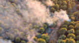 Visto dall’alto è un ambiente spettrale quello che appare dopo il vasto incendio di ieri nella zona boschiva a monte di Triscina di Selin...