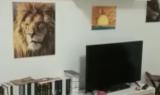 Un salone con tv e divani e poi una stanza adibita a piccola palestra dove all’interno c’era anche una scarpiera e un asse da st...