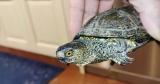 Una tartaruga palustre del tipo Emys Orbicularis, specie protetta e compresa nella Convenzione di Berna, che ne vieta la detenzione e la ven...