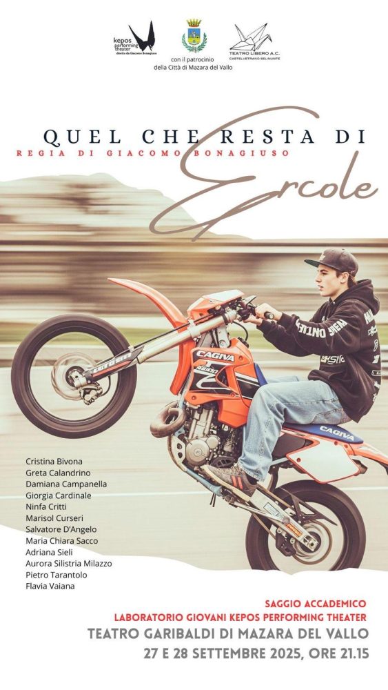 Il 27 e 28 settembre al Teatro Garibaldi di Mazara del Vallo andranno in scena in doppia replica serale (ore 21) i giovani allievi del laboratorio Kepos Performing Theater diretto da Giacomo Bonagiuso con lo spettacolo “Quel che resta di Ercole”.