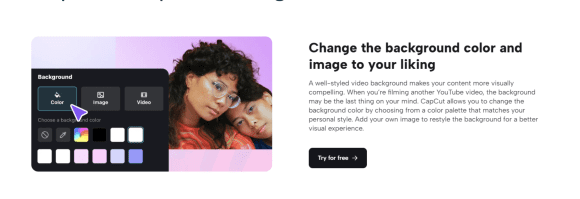 Una volta rimosso lo sfondo, CapCut non si ferma qui. Offre agli utenti l’opportunità di migliorare ulteriormente le proprie immagini personalizzando lo sfondo in base alle proprie preferenze. Gli utenti possono modificare il colore dello sfondo utilizzando una tavolozza di colori diversificata, consentendo loro di abbinare lo stile visivo al proprio marchio o al tema dei propri contenuti.