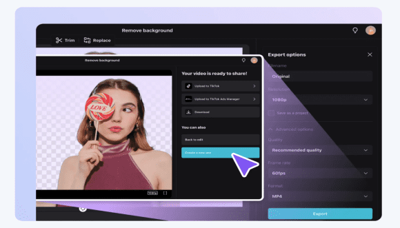 Una volta soddisfatti del video modificato, gli utenti possono impostare parametri quali nome file, risoluzione, formato e qualità. CapCut offre opzioni per scaricare il video o condividerlo direttamente sui canali di social media come TikTok, garantendo che il contenuto modificato raggiunga il pubblico previsto senza sforzo.