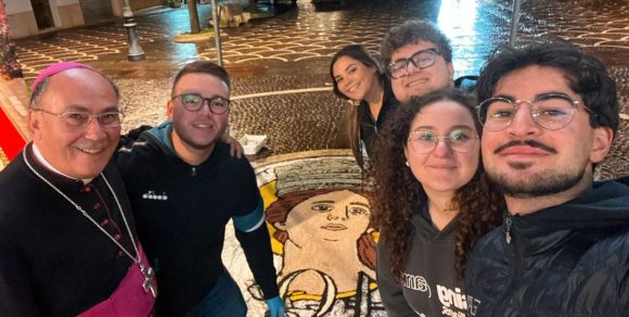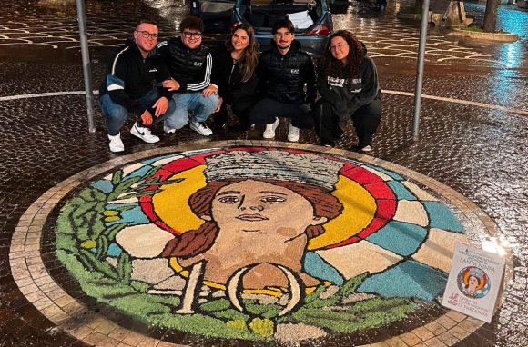 Dopo il successo dell’infiorata a Partanna, lo scorso giugno, il gruppo fondatore della manifestazione, guidato dal giovane Giuseppe Barresi, è stato chiamato dall’Amministrazione comunale di Santa Ninfa per realizzato una composizione dedicata a Santa Ninfa. L’installazione artistica è stata realizzata in piazza Libertà, utilizzando, per l’occasione, sabbia colorata e non fiori. A collaborare con Barresi sono stati Francesco Verde, Salvatore Musacchia, Alessia Marrone e Giada Milazzo. A sorpresa ha fatto visita al gruppo, proprio in occasione delle festività della patrona, il Vescovo monsignor Angelo Giurdanella, accompagnato dal sindaco Carlo Ferreri e dall’assessore Rosalinda Genco.