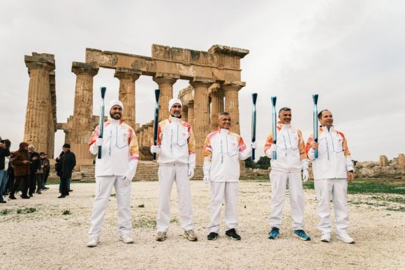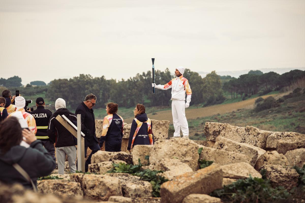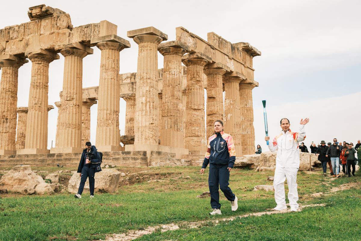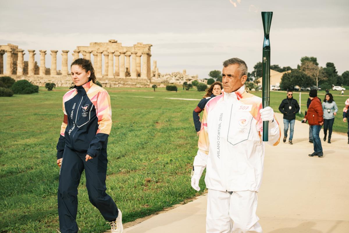 A 1.400 km Selinunte come Olimpia. Così come nel bosco sacro dell’antica Olimpia, davanti il tempo di Hera, (lì dove nacquero i Giochi Olimpici quasi tre millenni fa), si svolgeva la cerimonia di accensione della fiamma olimpica che segnava l’inizio simbolico dei giochi olimpici, oggi a Selinunte si è consumato un evento unico in tutta Italia. Quest’anno l’accensione della fiaccola per i Giochi di Cortina è avvenuto al museo archeologico di Olimpia. Oggi l’accensione della fiaccola per la tappa nel parco archeologico è avvenuta all’interno del tempio di Hera, lo stesso di quello dedicato alla divinità, moglie di Zeus, a Olimpia. Un evento straordinario, unico tra tutte le tappe della fiaccola che dalla Sardegna, ora in Sicilia, attraverserà l’intera Italia per giungere a Cortina. Cinque i tedofori che con una staffetta lungo i viali del parco hanno portato la fiamma accesa sino al tempio C, sull’Acropoli. L’ultimo tedoforo ha raggiunto l’altare di Apollo, innalzando la fiaccola a favore di fotografi che, con scatti unici per via del luogo, hanno immortalato un altro momento più suggestivo della tappa, dopo la partenza dal tempio di Hera.