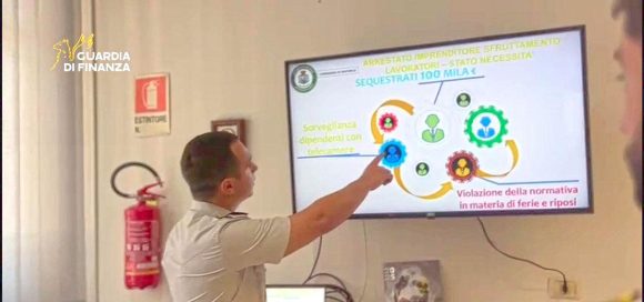 La Guardia di Finanza ha posto agli arresti domiciliari un imprenditore per aver sottoposto propri dipendenti a condizioni di sfruttamento. Nei suoi confronti è stato anche disposto il sequestro – in via diretta e/o per equivalente – di circa 100 mila euro, pari al profitto del reato. All’imprenditore, grazie alle indagini dei finanzieri, sono risultate riconducibili 2 società – oltre a quella da lui formalmente amministrata – con 11 punti vendita attivi nel commercio di vari prodotti, dal vestiario ad articoli di elettronica, dislocati tra Carini, Partinico, Alcamo e Castellammare del Golfo. Le indagini hanno fatto luce su di un vero e proprio sistema di abusi che sarebbe stato perpetrato nei confronti di decine di dipendenti, consistente in pratiche e prassi aziendali contrarie alle norme di legge vigenti, ovvero: la corresponsione di retribuzioni in modo palesemente difforme dai contratti collettivi nazionali e comunque sproporzionate rispetto alla quantità e qualità del lavoro prestato, costringendo i lavoratori a espletare attività lavorativa “full time”, sebbene assunti formalmente con contratti “part-time” e retribuiti come tali. E ancora: violazione della normativa in materia di ferie e riposi che spesso non sono stati concessi.