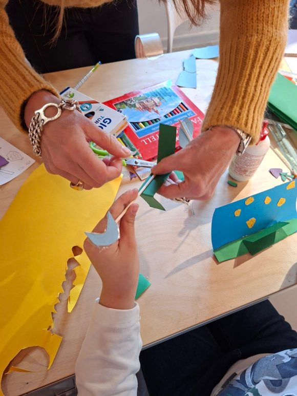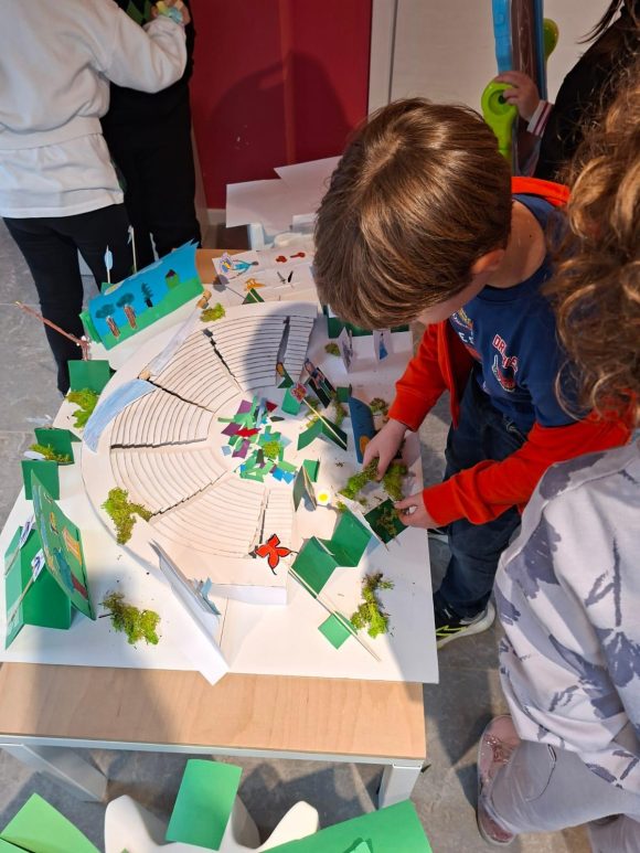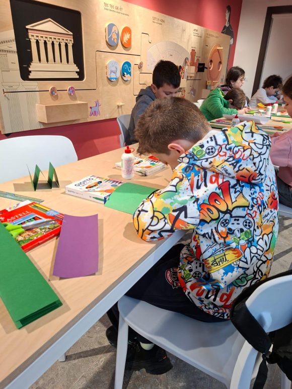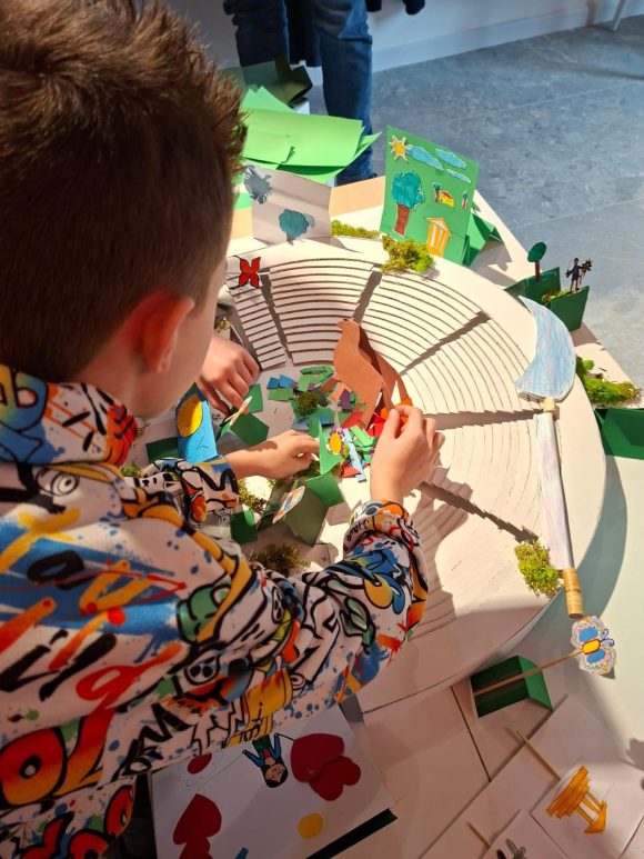 Ritorniamo al workshop: i bambini hanno creato collage e pop-up, realizzando divinità, animali, fiori, nuvole, persino un carretto siciliano; e ancora, spade, farfalle, stelle, lune, soli, e tutto è finito nel plastico del teatro. Ogni bimbo e bimba ha raccontato a turno le sue piccole creazioni. Dal plastico alla visita del Teatro Antico – che in estate si animerà con il Segesta Teatro Festival – è stato un passaggio naturale: i piccoli con i genitori (che nel frattempo hanno potuto visitare il Parco gratuitamente) hanno compreso la storia, gli elementi architettonici del monumento. Una mattinata entusiasmante, gradita agli adulti, ma adorata sul serio dai bambini.
